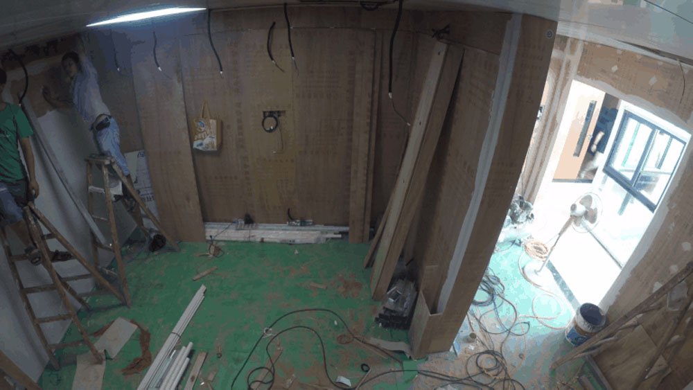 緊接著是封墻及搭建龍骨架,展廳初現(xiàn)雛形
