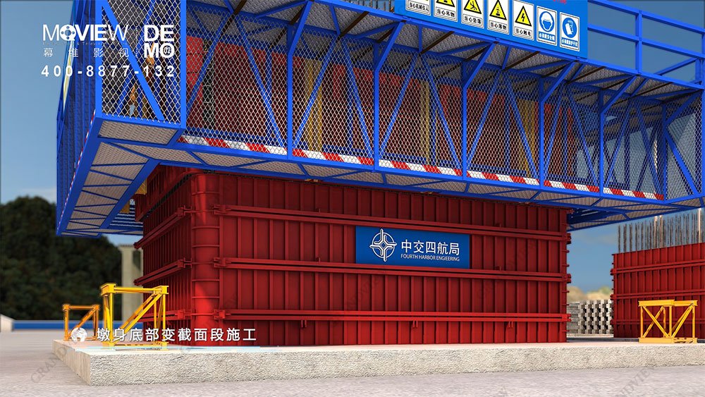 整個視頻時長3分15秒,主要由動畫、AE、旁白等構(gòu)成,其中三維動畫總時長2分17秒,AE部分1分59秒。片子將橋梁高墩液壓頂升模架施工工藝以準(zhǔn)確的構(gòu)圖、流暢的邏輯、清晰的畫面呈現(xiàn)在觀眾眼前。